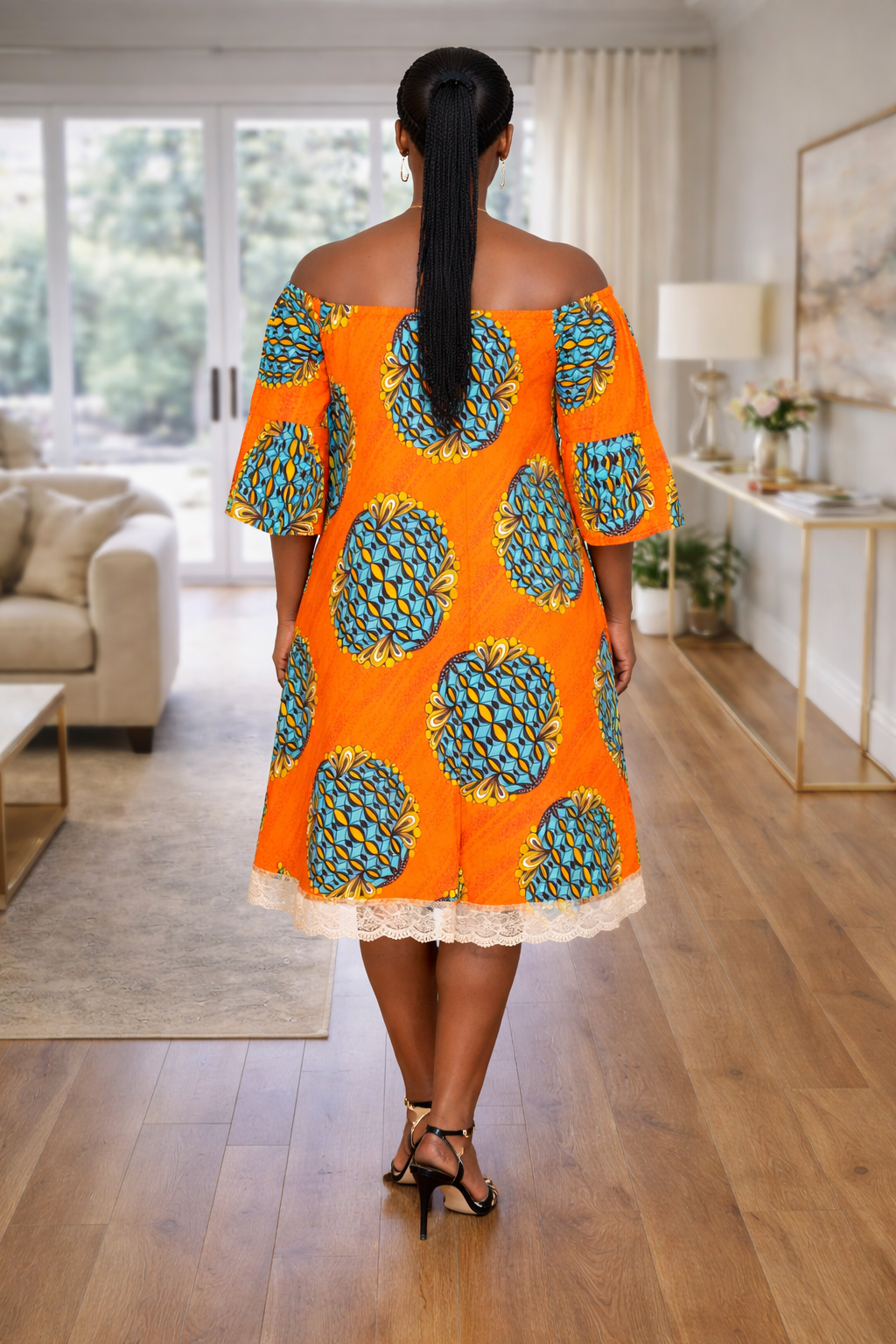 Elevate your wardrobe with the EBUN Collection Off-Shoulder Ankara Dress and experience the magic of African fashion at its finest. Make a bold fashion statement and exude confidence and elegance with every step you take in this stunning piece.
