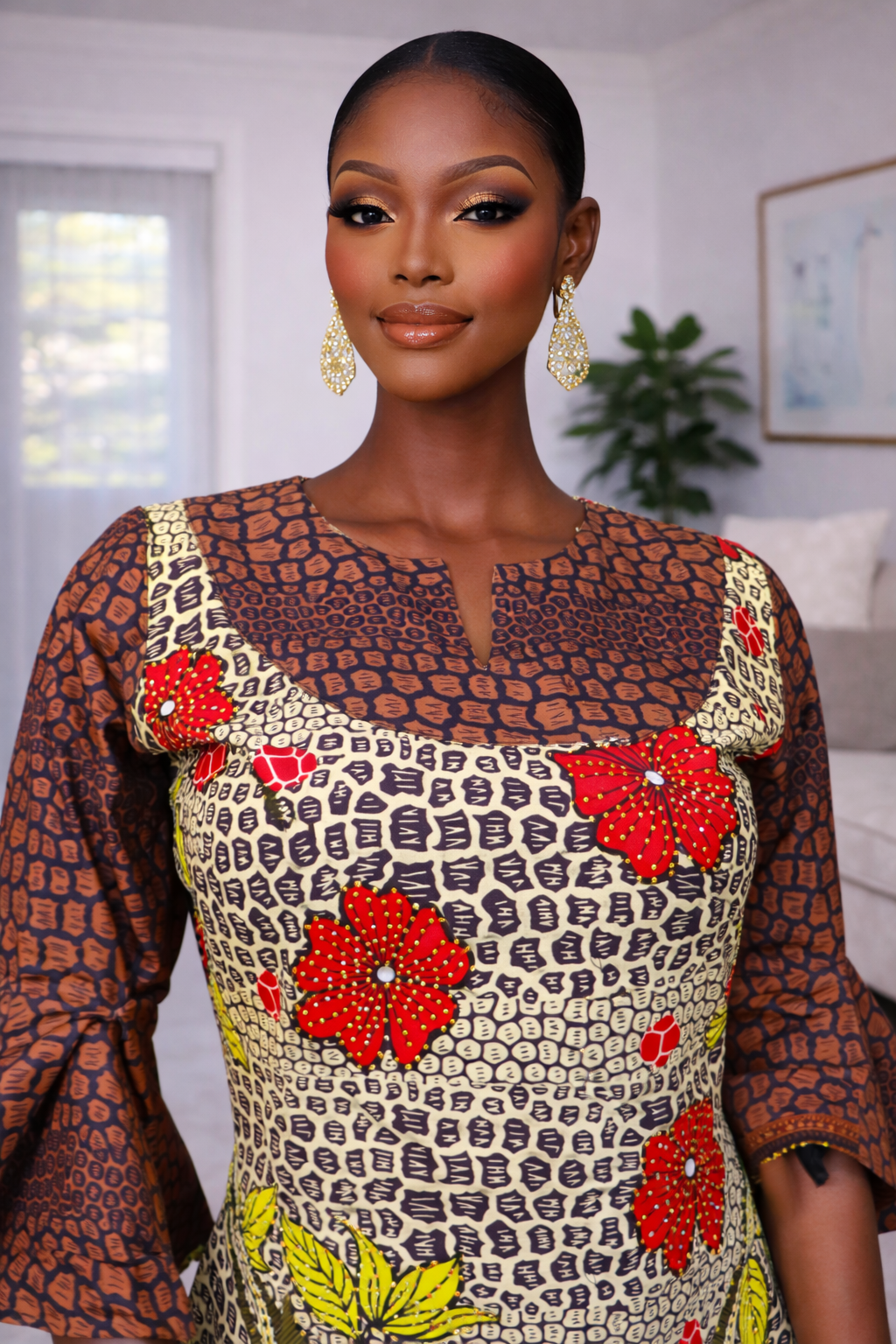 Elevate your style with the exquisite ENIOLA Collection Ankara Short Dress, meticulously stoned for the discerning fashion enthusiast. Handcrafted with care and attention to detail, this dress is a perfect blend of traditional Ankara fabric and modern design. Stand out from the crowd in this unique piece that exudes elegance and sophistication. Please note that this dress is not suitable for machine washing.