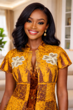 The captivating Ankara print, combined with delicate detailing, makes this kimono a standout piece in the EFE Collections range. Each element of the design showcases the brand’s commitment to quality craftsmanship and meticulous attention to detail, resulting in a garment that exudes timeless beauty and charm.