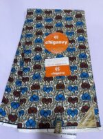 This fabric features a vibrant wax print design with repeating floral motifs in blue and brown on a light background. It has a bold, traditional African aesthetic and appears to be a high quality, colourful cotton wax fabric suitable for stylish garments and cultural wear.